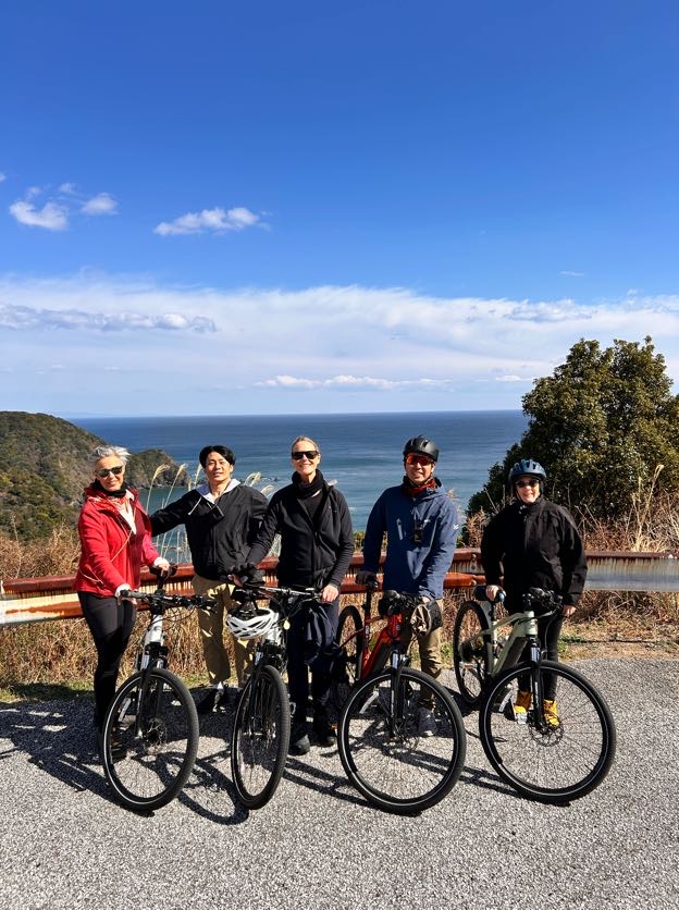 As the winter winds of early March swept across the island, our "Shikoku Sunshine Cycling Tour" came to a successful close. This tour was a unique journey through the quiet, crisp landscapes of Shikoku, followed by the ultimate reward of a steaming hot spring. We sat down with three wonderful guests from Australia to hear about their experiences, from the "luxury" of the onsen to the heartwarming encounters with locals in hidden villages.