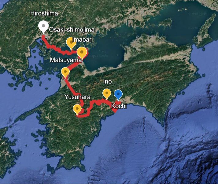 | Day2 | Imabari | 70km / 43miles | ImabariKokusai Hotel | |